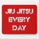 Red BJJ mousepad with Jiu jitsu every day in white.