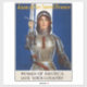 The WWI poster featuring Joan of Arc was a powerful piece of propaganda designed to galvanise American women into supporting the war effort. The image of Joan of Arc, a legendary French heroine who led her country to victory against the English, was strategically chosen to inspire patriotism and a sense of duty. The poster's message, "Women of America, save your country--Buy War Savings Stamps," directly appealed to women's sense of national pride and their ability to contribute to the war effort, even from home. - The poster's connection to Joan of Arc's life story further amplified its impact. Joan of Arc, a young peasant girl from rural France, claimed to have received divine visions that called her to lead the French army in the Hundred Years' War. Despite initial scepticism, her unwavering faith and military prowess led to significant victories against the English. Her story resonated with Americans, particularly women, as it embodied courage, determination, and a belief in a higher purpose. By aligning the purchase of War Savings Stamps with Joan of Arc's heroic actions, the poster suggested that women could play a vital role in securing victory for their country. - The poster's success can be attributed to several factors. Firstly, it tapped into the widespread admiration for Joan of Arc, whose story had been popularised through literature, art, and historical accounts. Secondly, it effectively utilised the powerful imagery of a strong, determined woman leading a nation to victory. Thirdly, it offered a tangible way for women to contribute to the war effort, even if they were unable to serve on the front lines. By purchasing War Savings Stamps, women could feel empowered and connected to the larger cause. - The WWI Joan of Arc poster remains a significant piece of American history, illustrating the power of propaganda and the role of women in wartime. It serves as a reminder of the sacrifices made by countless individuals during World War I and the enduring legacy of Joan of Arc as a symbol of courage and patriotism. - This work is in the public domain in its country of origin and other countries and areas where the copyright term is the author's life plus 80 years or fewer. - This work is in the public domain in the United States because it was published (or registered with the U.S. Copyright Office) before January 1, 1929.