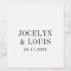 Modern wedding wine label featuring a minimalist black and white design with your names in a large font along with your wedding date. This design is simple enough for a formal wedding yet makes a bold statement.