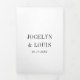 Modern all in one tri-fold wedding invitation featuring a minimalist black and white design with your names in a large font along the left side and top. The enclosure card panel has an optional QR code. You may remove the QR code in the design editing tool. This design is simple enough for a formal wedding yet makes a bold statement.