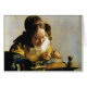 A classic Vermeer setting showing an everyday domestic activity in his usual subdued and gentle tones.
