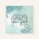 Inspirational quote scripture personalised notebook, journal depicts a floral design with simple hand drawn flowers on a blue and white abstract background. It features Bible Verse John 1:16, " From His fullness we have all received grace upon grace." Customise the back with a name or details of your choice.