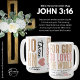 Embrace the timeless wisdom of John 3:16 with every sip. This stunning ceramic mug features a unique design showcasing the beloved Bible verse, surrounded by delicate floral accents.