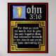 John 3:16 Blue Illuminated Letter Biblical Quote Poster