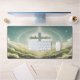 Soft blue cross among fluffy clouds with typography design.