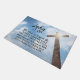 Inspirational quote scripture doormat depicts blue skies and white clouds with rays of sun shining down on a wooden cross. It features Bible Verse John 3:16, "For God so loved the world that He gave His only begotten Son, that whoever believes in Him should not perish but have everlasting life."