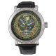1. Embrace the harmonious blend of nature and music with this exquisite watch, featuring a delightful green and gold frog strumming an acoustic guitar beneath a radiant golden moon. This enchanting design captures the essence of tranquillity, surrounded by majestic mountains, cascading waterfalls, and a serene lake, inviting a sense of peace and joy into your heart. The vibrant colours of the frog, coupled with the intricate details of its guitar, create a stunning focal point that is sure to spark conversations and admiration from all who see it. , this watch serves as a perfect reminder of the beauty of creation and the joy of music.