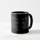 This two-tone mug showcases a design that features a Noteable print font with black letters white outline displaying the "John 7:38" KJV bible scripture verse over a black background in this faith based theme. This verse is referencing the Book Of John 7th chapter showing the 38th verse in this bible scripture quote theme from the King James bible. The rim & handle are glazed in matching colours available in 11-ounce or 15-ounce sizes microwave and dishwasher safe ceramic construction.