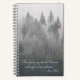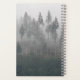 Slender style, spiral bound notebook with front and back cover featuring the photo image of a forest wilderness enveloped in fog. Front cover of notebook includes inspiring words of a quote from naturalist John Muir that reads, "The clearest way into the Universe is through a forest wilderness." Perfect for use as a journal or for keeping notes. Select your notebook style and wire color.