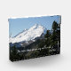 Acrylic photo block that features a scenic, landscape photo image of snow covered Mount Baker, a tall mountain peak located in the North Cascades of the Pacific Northwest, along with an inspiring quote by naturalist John Muir that reads, "The mountains are calling and I must go."