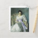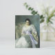 John Singer Sargent Lady Agnew postcard. Oil painting on canvas from 1892. Lady Agnew of Lochnaw was American artist John Singer Sargent’s most successful early portrait. Comissioned by Andrew Noel Angew, the work depics the baron’s young wife Gertrude Vernon sitting in an floral upholstered chair wearing a flowing Edwardian dress with semi-translucent sleeves and lilac sash. The young lady gazes elegantly towards the viewer wearing a jewelled necklace and gold bracelet with her dark hair done up. A beautiful gift for fans of John Singer Sargent, Edwardian high society, and elegant portraits.