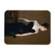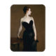 John Singer Sargent Madame X magnet. Oil painting on canvas from 1883. American painter John Singer Sargent was a master of the Edwardian portrait. Madame X is one of his most evocative works. The painting depicts Madame Pierre Gautreau in a sleeveless black gown standing by a table, her head is turned away from the viewer revealing her elegant profile. Madame Gautreau’s auburn hair is done up, and she holds a black fan in her left hand. A beautiful gift for fans of John Singer Sargent, elegant lady paintings, and American art.