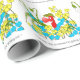 On the pictures I have uploaded the print looks a bit aged and not so vivid and new looking. As I wanted an aged patina but the actual print is clearer and the colours are brighter. The colour and prints are good.