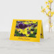 The Johnny Jump Up is a cheerful little member of the viola family. Abundant blooms sparkle in the summer garden. Another common name is Heartsease because in ancient days the plant was much used for its potency in love charms. This birthday card is decorated with these wonderful flowers, in their brilliant yellows and purples, each with a tiny little face.