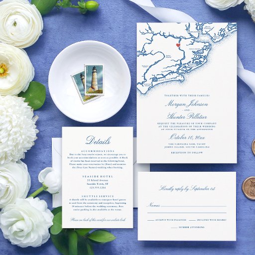 Johns Island SC Map Elegant Navy Blue Wedding Save The Date