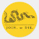 Join Or Die - Libertarian - the famous political cartoon created by Benjamin Franklin for the Pennsylvania Gazette on May 9, 1754. It is a woodcut showing a snake severed into eighths, with each segment labelled with the initial of a British American colony . It's the earliest known pictorial representation of colonial union produced by a British colonist in America.