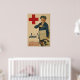 A World War I poster showing a boy carrying newspapers and pointing to Red Cross button on his sweater.