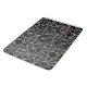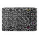 An intricate pattern of gray crosses and circles that intertwine on a black background with just a hint of color.