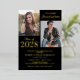 Real foil joint graduation party invitations featuring a stylish black background that can be changed to any colour, photos of the two graduates, and a elegant gold foil double celebration template that is easy to personalise. NOTE: Foil can be changed to silver or rose gold.