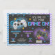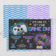 Level up the celebration with this fun Game On Joint Birthday Invitation! Designed for gamer siblings, this bright and playful invite features colorful controllers, arcade joystick elements, pixel hearts and stars, and a bold modern font. The split blue and purple border makes it perfect for a shared boys & girls birthday party. Easily personalize with your party details and invite guests to press start on an epic gaming celebration at home, arcade, or game truck!
