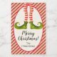 Fun elf legs wearing red and ivory striped tights and green boots with jingle bells, and your holiday Christmas greeting in chic lettering, personalise these MINI wine bottle labels to serve at your holiday party or to give as gifts or party favours, business gifts, corporate gifts, CHANGE THE WORDING "Merry Christmas" to anything!