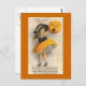 Beautiful vintage Halloween card showing a little girl dressed in yellow and black being surprised by a pumpkin face.