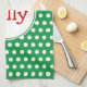 A festive green and white polka dot pattern decorate this jolly holiday kitchen towel. The design is from original art.