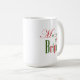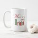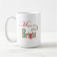 The Christmas mug showcases the decorative calligraphy of "Merry and Bright" in a festive red and green design. Elegant and jolly, it spreads cheer and joy with every sip. Customise this item or purchase it as is.