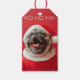 Add a festive touch to your holiday gifts with this adorable red gift tag featuring a laughing pug dressed as Santa. Perfect for dog lovers and anyone who appreciates a good laugh.