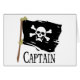 A Jolly Roger pirate flag and caption Captain available on Pirate T-shirts, Buttons, Magnets, Tote Bags, Aprons, Sweatshirts, US Postage, Note Cards, Mousepads, and more fun pirate gifts. Click on the Customise It link to personalise any item by adding a name or your own message.