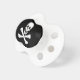 My new grandson is the precious child of a proud Petrolia Pirate High School teacher and former coach and her husband. The pirate pacifier is adorable, the shape for a very young baby is appropriate, and the shape and durability of the plastic is above the standard available in stores. The pirate image on the pacifier is very clear, precise, and cute!