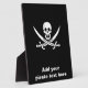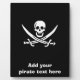 Easily personalise this fun kids modern Jolly Roger pirate skull graphic and crossed swords flag on a black background. You can easily change the background colour from a range of over 200 colours .