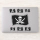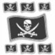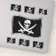 Custom cut out vinyl stickers of Jolly Roger pirate flags with skulls with an eye patch and crossed swords.