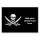 Easily personalise this fun kids modern Jolly Roger pirate skull graphic and crossed swords flag on a black background. You can easily change the background colour from a range of over 200 colours .