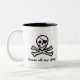 A classic pirate flag Jolly Roger on each side with the warning, "Hands off my Grog!
