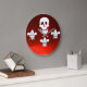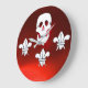 JOLLY ROGER SKULL AND THREE LILIES FLAG, Red Ruby Large Clock