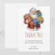 Thank you card with a cute Christmas image. A traditional Santa Claus in his classic red outfit. His arms full of presents. Ready to bring gifts to everyone.