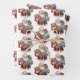 Wrapping paper with a cute Christmas image. A traditional Santa Claus in his classic red outfit. His arms full of presents. Ready to bring gifts to everyone.