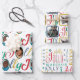 JOLLY Script Colourful On White 4 Photo Christmas Wrapping Paper Sheet