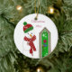 A jolly snowman in a green and red hat and scarf. He holds a candy cane. A festive birdhouse with a little blue bird on the perch. Customize with year or change message as desired.