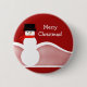 Super fun and whimsical Jolly Snowman Holiday Button. This customisable Christmas button features a delightful and happy snowman against snow-covered hills and a red background. This cute snowman button makes a great gift when you customise this design with your own personalised text!