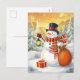 Jolly Snowman Lantern Gifts Snowy Forest Holiday Postcard