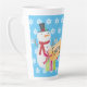 This "Jolly Snowman With A Christmas Present" is set on a snowy background, and he has a present with your name on it. The text on this design can be customised.
