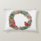 Festive Holiday custom pillow, features Illustrated snowman welcoming Winter with open arms. Enjoy the magic of the season with this charming snowman in winter garden. Friendly snowman shares the holiday spirit with cardinal & bunny friends in winter garden. Currier & Ives illustration by judithchengart, designed to bring a touch of whimsy to your home decor