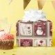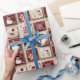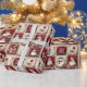 Smiling, jolly snowmen, flowers, and snowflakes on a tan and red squares against a tan background create a cute wrapping paper with a rustic, country look. Very cute, and perfect for all your holiday gifts.