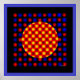 After looking at this image for a while depending on the viewer's visual sensitivity, non-stop motions - or no motion at all - could be perceived. The motions are inside and outside the circle - within the blue red black background. Tilting the head sideways while watching the image, may magnify the optical effects. Other versions of this image have either stronger or weaker effects on the same viewer.