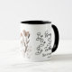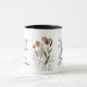 Coffee, tea mug with inspirational quote scripture depicts an earth tone watercolor floral with pink and grey flowers and foliage. It features a portion of a powerful Bible Verse taken from Joshua 1 9, "Be strong, be brave, be fearless. You are never alone."