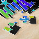 This exciting and lively birthday-themed jigsaw puzzle design features the message "HAPPY BIRTHDAY, JOSHUA" with the characters having a colourful rainbow spectrum inspired gradient pattern, in addition to a vibrant field of stars background pattern. A colourful puzzle like this might be a fun way to acknowledge the birthday of somebody named Joshua. [~Z0000468]