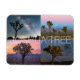 Joshua Tree National Park Sunset Night Landscape Magnet: a magnet made with four photos taken in Joshua Tree, California. With a Milky Way galaxy photo, a night sky star trail showing the earth's rotation around the North Star, a sunset, and a sunrise photo taken during the blue hour, with snowy mountains behind the Joshua trees, this is the perfect postcard for Joshua Tree National Park lovers!