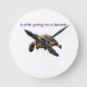 Great quality clock and very well made. Just what I was looking for to finish my hall off. Looked in loads of other websites and eventually found exactly what I was looking for at Zazzle. Designe and colour is perfect. I just love it. Bought the medium size and fits well for where I was placing it.